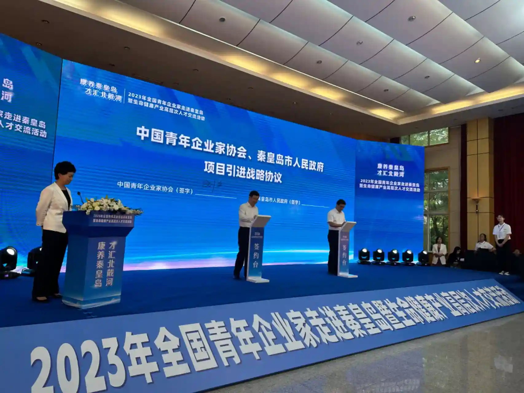在活动中,同期举行了中国青年企业家协会与秦皇岛市人民政府项目引进战略协议、秦皇岛人力资源产业园与智联招聘战略合作协议、国药器械(海南)有限公司与秦皇岛北戴河新区管理委员会战略合作框架协议等签约仪式,以及全国青年企业家生命健康产业发展座谈交流会。