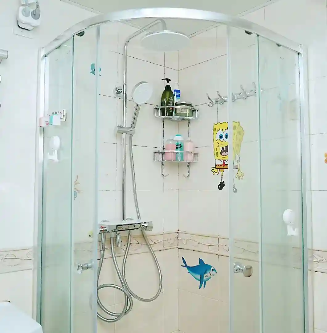 大尺寸的钢化玻璃置物台,洗澡时放洗面奶或者沐浴露也轻松了很多,钢化玻璃表面也无需担心划伤的情况出现。