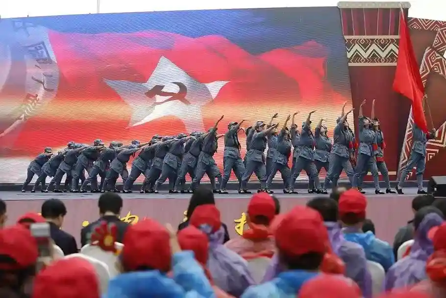 自治区党委组织部部务会成员、两新组织党工委专职副书记刘水玉,桂林市委常委、组织部部长彭东光,广西电视台副台长张敬,灌阳县委书记周春涌,桂林电子科技大学马克思主义学院党委书记邓国峰,红五军团三十四师战士俸旺桂的儿子俸顺喜为参加重走红军路活动的少先队员代表授旗。身穿红军军服的孩子们接过红旗,出发重走长征路,标志着中国新生一代对红军精神的传承,也揭开了2018灌阳红色文化旅游节的序幕。