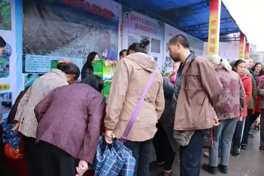 活动现场,40个展位同时展出灌阳优质特产,灌阳的油茶、再生稻大米、红薯粉、千家洞矿泉水、野灵芝、野生蜂蜜等吸引观众前去试吃体验,展位区人潮涌动,许多人加入了边逛边吃边买边扶贫的队伍。