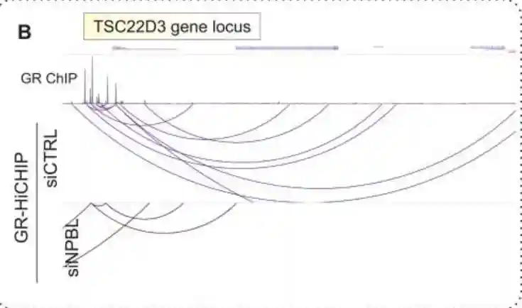 在重要的地塞米松诱导环中,将GR结合增强子与GR靶基因Fkbp5和Tsc22D3联系起来,NIPBL和SMC1A以地塞米松依赖性的方式结合了这些增强子-启动子接触,