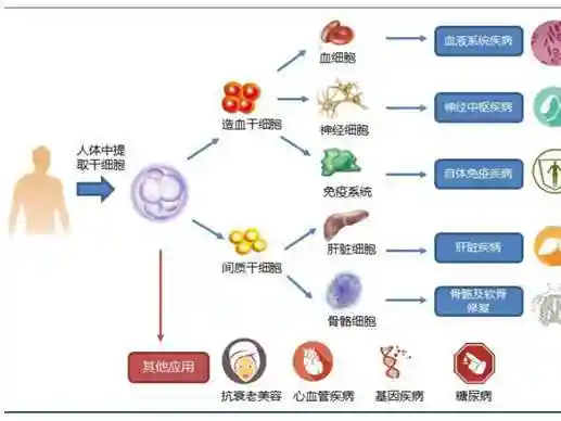 在我们身体里,有一部分细胞属于干细胞,该细胞仍能够继续分化和增多,分化出其他不同的细胞。比如:造血干细胞可以分化为神经细胞,体细胞等。