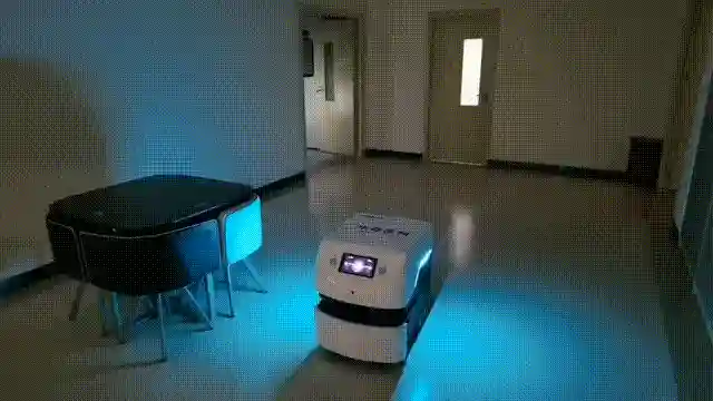 机器人365的智能消毒机器人在医护现场进行消毒工作