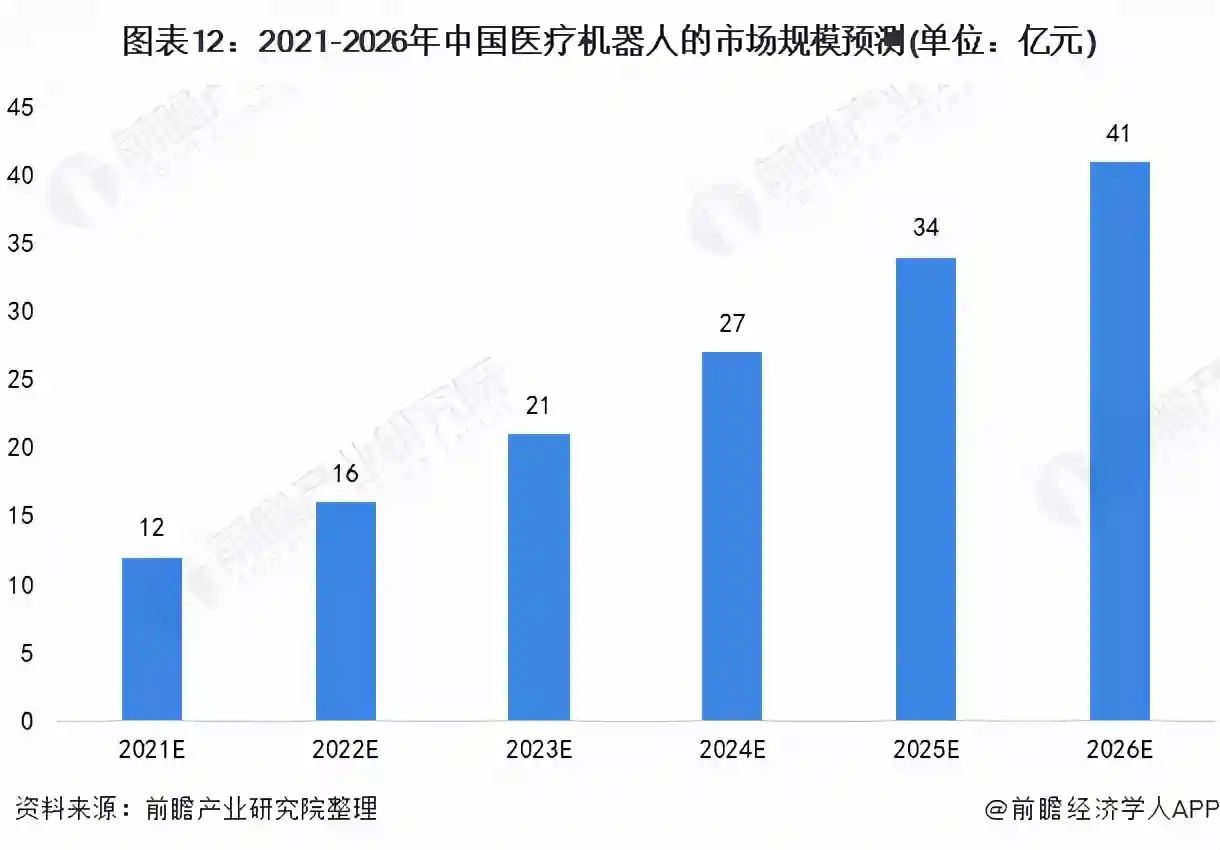 在国家和市场的双重利好因素下,医疗机器人发展的速度得到了前所未有的提升,国家政策导向将继续支持医疗健康行业,并持续推动整个产业的快速发展。同时,随着中国老龄化人口的增加,医疗机器人的需求也在不断增加,随着国家政策支持与市场需求增长双因素将驱动医疗市场的规模进一步扩大,医疗机器人和医疗服务行业将迎来新的发展契机,预计到2026年,国内医疗机器人市场规模有望达到41亿美元。