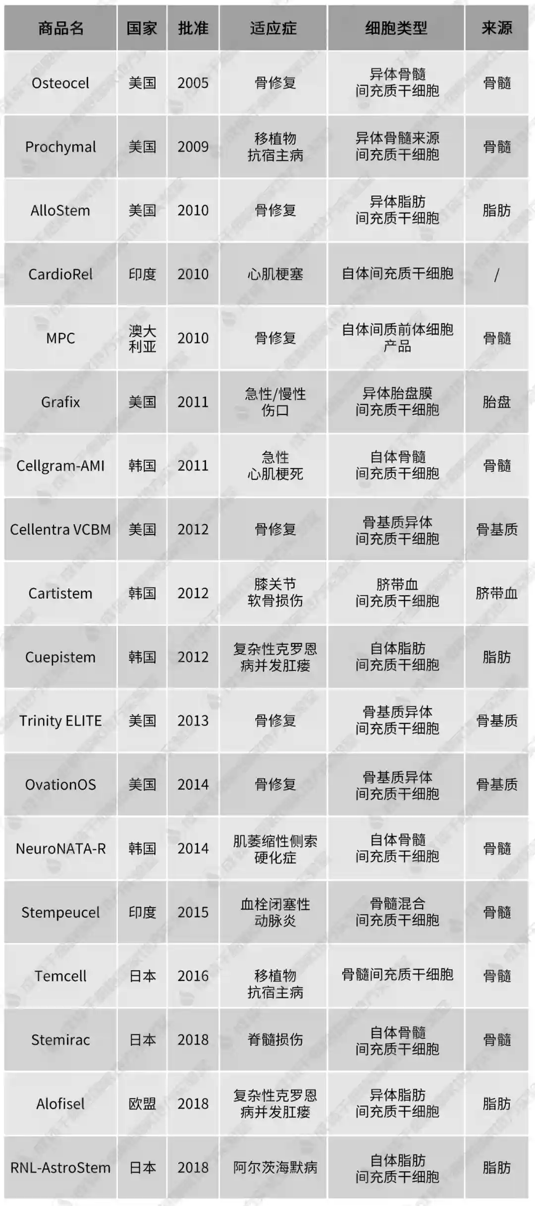 其中,3款与澳大利亚Mesoblast公司有关,4款来自韩国,3款来自日本、印度。