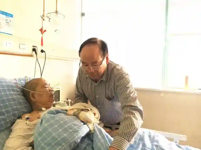 蔡梅飞在医院照顾妻子