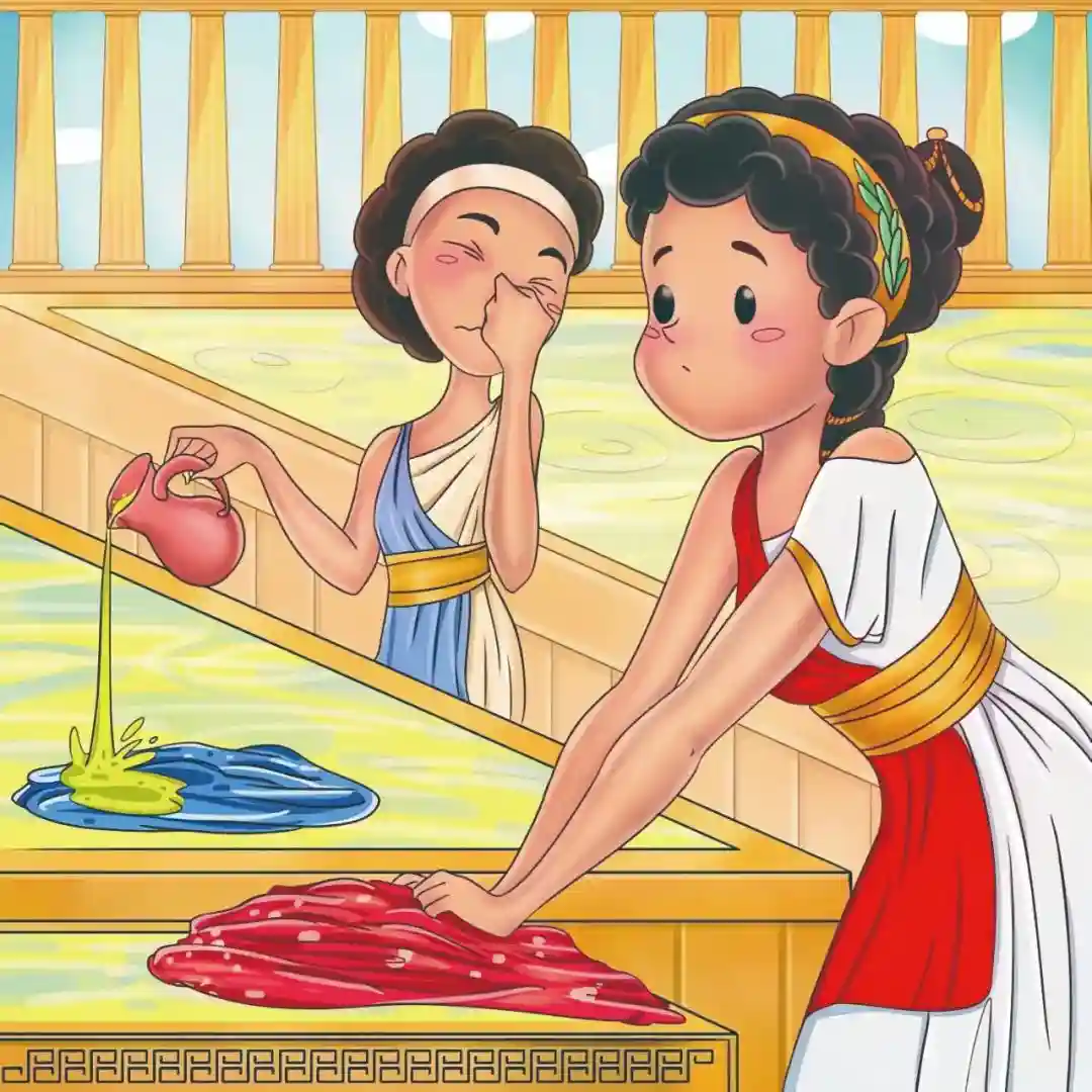 过去,人们会提取植物中的天然色素为布料进行染色,但天然染料难以持久地停留在布料上。古罗马人会将尿液混入染料中,再用其浸泡布料,染出来的布就不容易褪色。这是因为尿液中的氨能在染料分子周围形成网状结构,使染料显色并牢牢粘在纤维上。