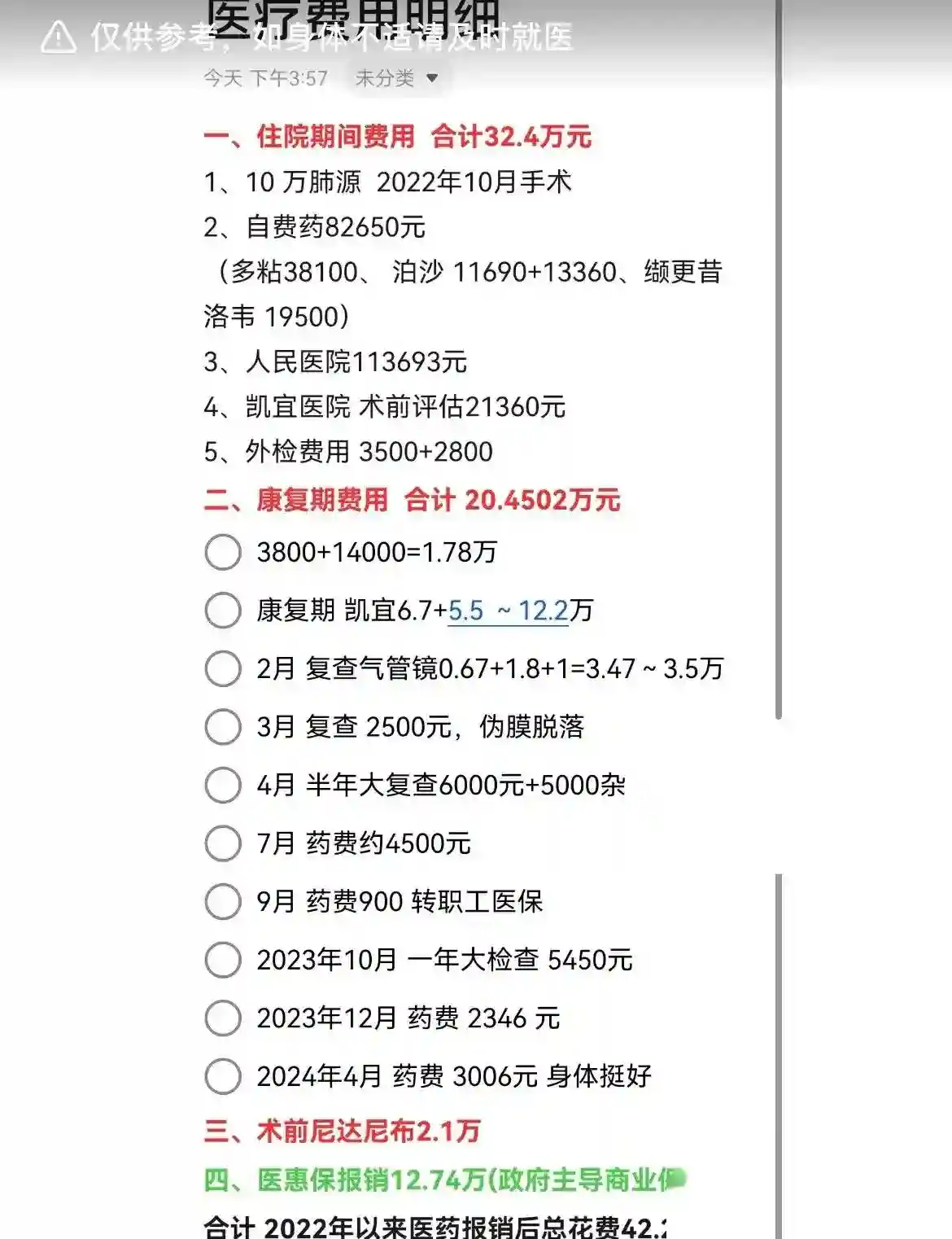 这个数字对于我们普通人来说确实是一个巨大的数字,而对于73岁高龄来说,肺移植手术又有着很大风险。