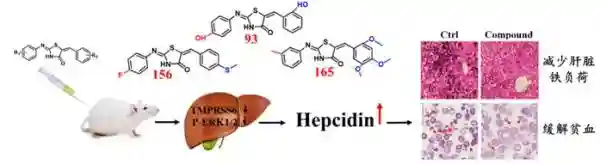 图1噻唑烷酮类化合物通过增加铁调素(Hepcidin)表达来阻止铁负荷与改善贫血