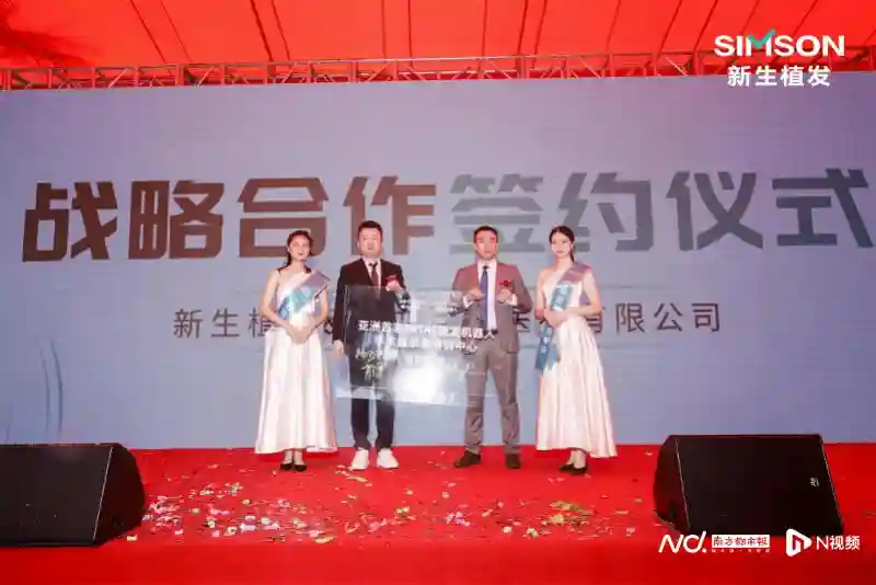 为打通产业链,形成有效的防脱闭环,从“防、养、疗、植、固”手段应对“头”等大事,新生植发与贝妮芙、华熙生物、普门科技皆建立战略合作关系,活动上,三家企业先后为新生植发(华南总院)天河院部颁发授权牌。