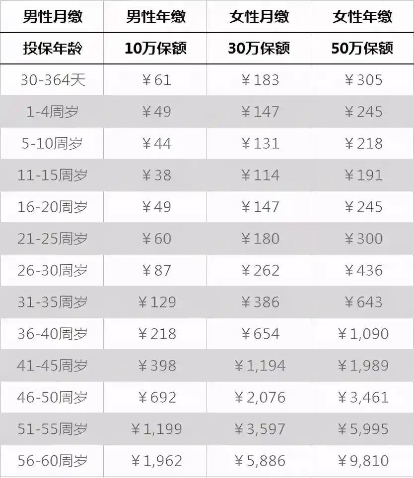 我们看重疾险的保费,基本上也是遵循年龄越大,保费越高的原则: