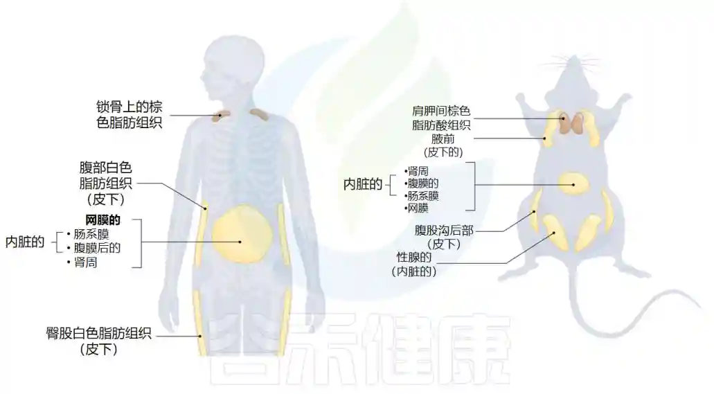 人体内的脂肪组织可以根据其位置(皮下和内脏)或根据其形态(WAT或BAT)来划分,每个脂肪库都有其独特的生理和代谢特征。