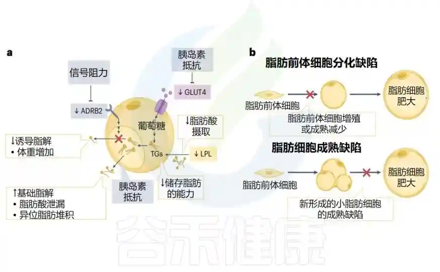 有人提出,当皮下脂肪组织(SAT)扩张受损时,特别是当增生受到限制时,会导致肝脏和骨骼肌中异位脂肪沉积,从而导致肥胖相关疾病的发病机制。