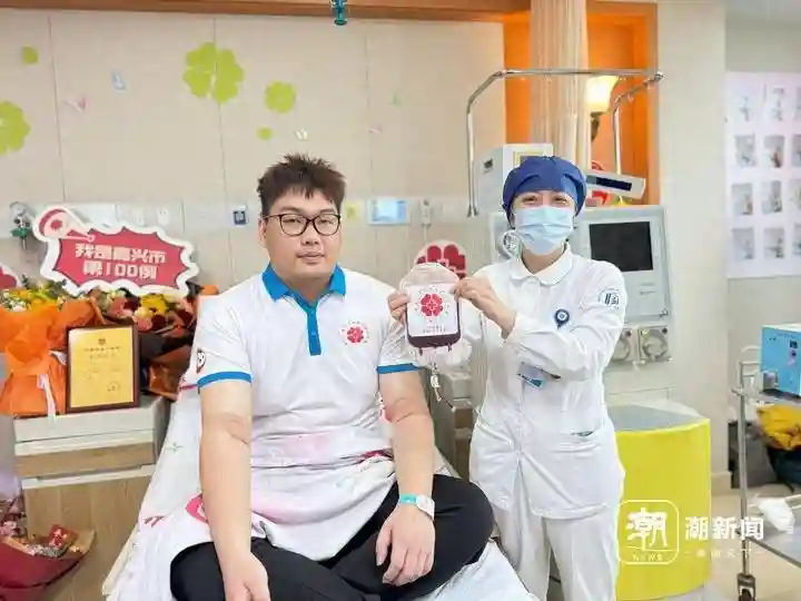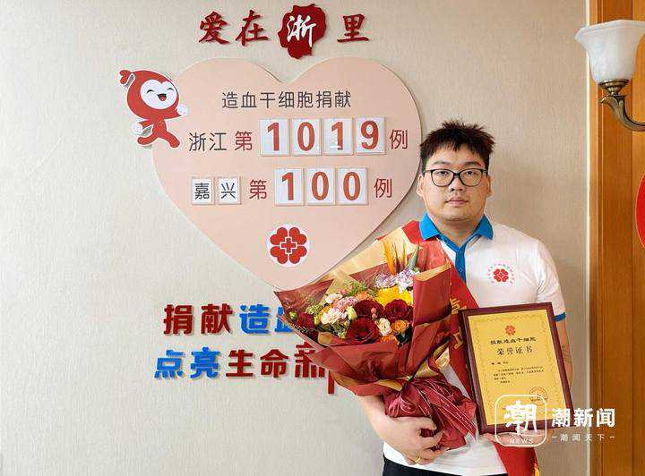 唐超成为嘉兴市第100例、全省第1019例造血干细胞捐献者。(记者郁馨怡摄)