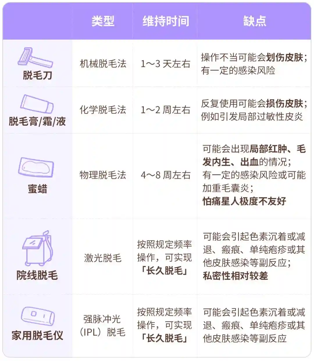 提醒一下:每种脱毛方式都有些风险,但在正确操作的前提下,脱毛还是相对安全的