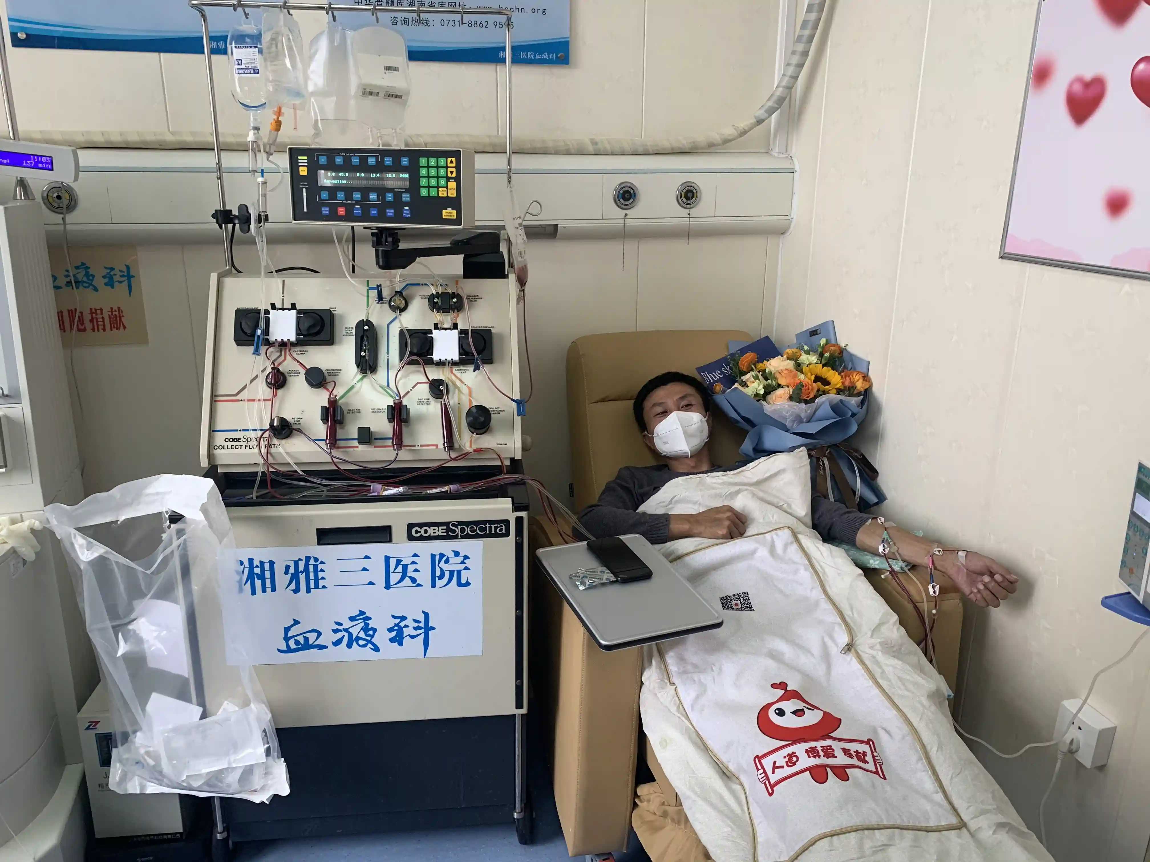 经过进一步的检查和高分辨配型后,罗坤的身体情况很符合捐赠条件,在捐赠的前几天,罗坤每天往返医院两次去注射动员剂,2月16日,在学校同事们的陪伴下,罗坤终于入院,进行干细胞的采集。