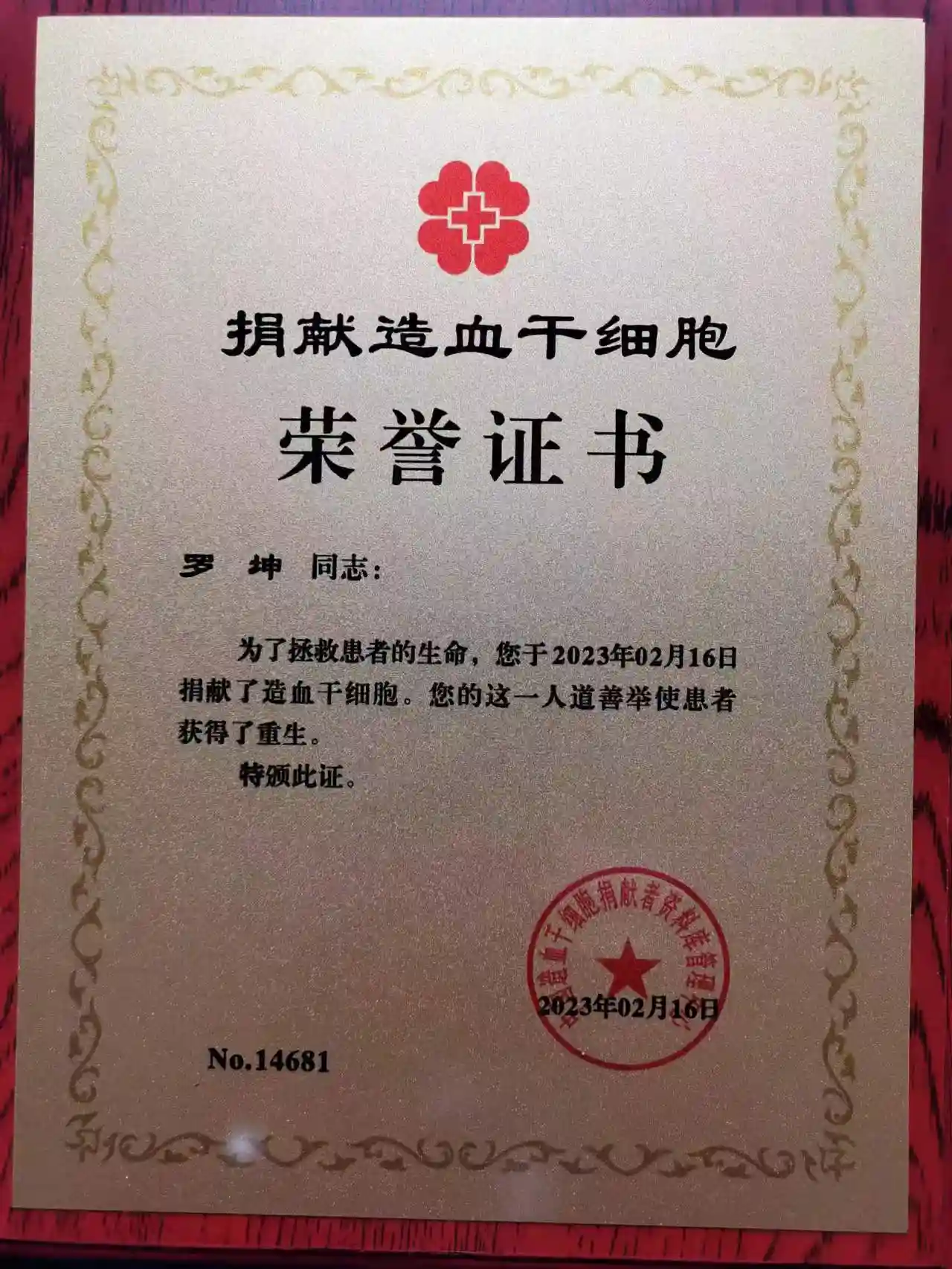 时间来到2022年12月的一天,罗坤突然接到长沙红十字会的电话,得知他与一名武汉的孩子配型成功,对方询问他是否愿意进行进一步的检查和比对。罗坤挂掉电话后的反应是觉得自己好幸运,还能有一次能救别人一命的机会。