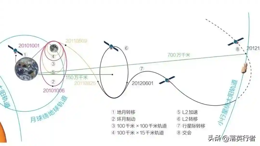 而“嫦娥二号”卫星执行日地L2点驻留和飞越观测图塔蒂斯小行星的任务更加精彩绝伦。2011年6月8日开始,“嫦娥二号”从100千米环月轨道上经过2次逃逸控制进入转移轨道,经过约85天左右到达日地L2点附近,然后经过1次捕获控制进入李萨如轨道。中途修正控制采用标称轨道控制算法和轨道重构控制算法,利用共线平动点轨道控制的逐级微分改正法,实现了中途修正和目标轨道维持的能量最优化,使原定的4次转移中途修正减少为1次,原定每1~2个月进行一次的轨道维持,实际L2点绕飞近8个月时间,仅在2011年11月30日进行了一次轨道维持。绕飞L2点8个月后,“嫦娥二号”实施了2次飞离L2点的控制,进入到过渡李萨如轨道,然后采用遍历搜索和微分修正相结合的方法进行了3次中途修正,实施了1次飞越瞄准控制,“嫦娥二号”最终于2012年12月13日与小行星交会,国际上首次成功获取了图塔蒂斯小行星近距离清晰图像。