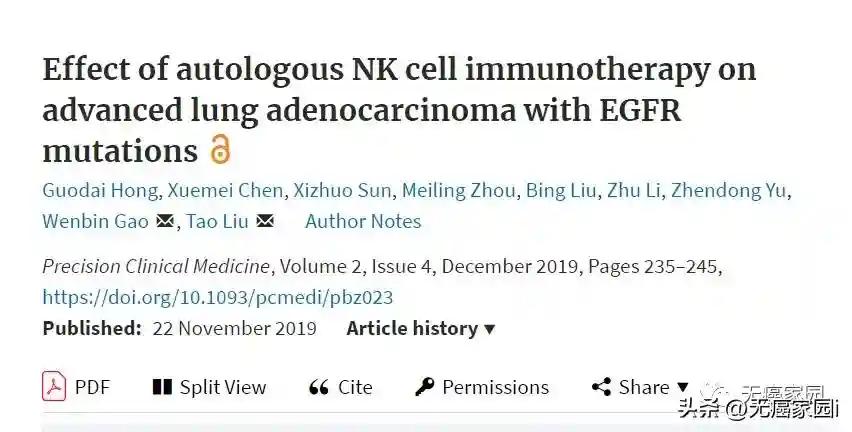 一项于2019年12月发表于《PrecisionClinicalMedicine》杂志的研究,主要探讨自然杀伤(NK)细胞免疫疗法对有或无EGFR突变的非小细胞肺癌的有效性,以评估缓解率(RR)和无进展生存期(PFS)。