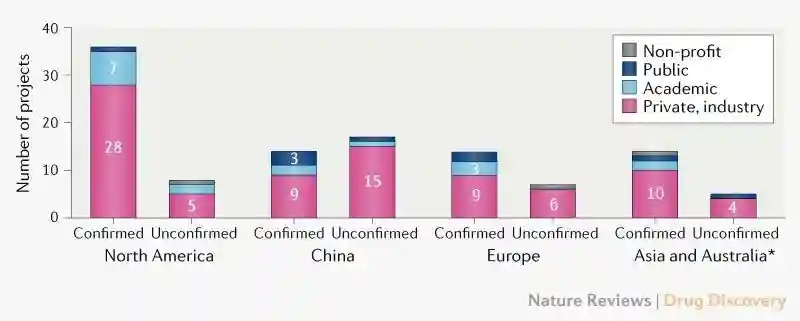 图2.新冠疫苗开发商,按类型和地理位置划分。合伙企业的地点采用主要开发商的所在地。*图中数据不包括中国