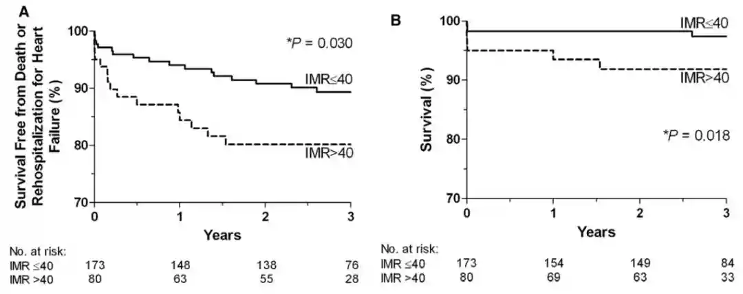FearonWF等人的研究纳入253例患者,术后测量IMR。主要临床终点为死亡和心衰再次入院。