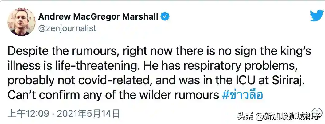 这次,依然是专攻泰国王室的英国记者爆料出来的~他说泰王进了泰国最大的重症监护室接受治疗啦,据说是呼吸系统的疾病,不知道是否和新冠病毒有关系~