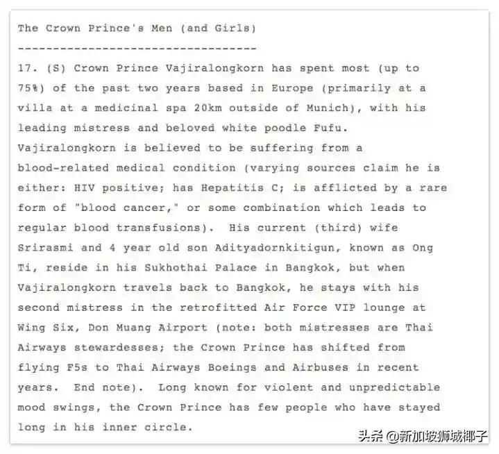 根据这个专供泰国王室的英国记者说,泰王啊他在上个世纪九十年代,就在寻花问柳中,感染了艾滋病。