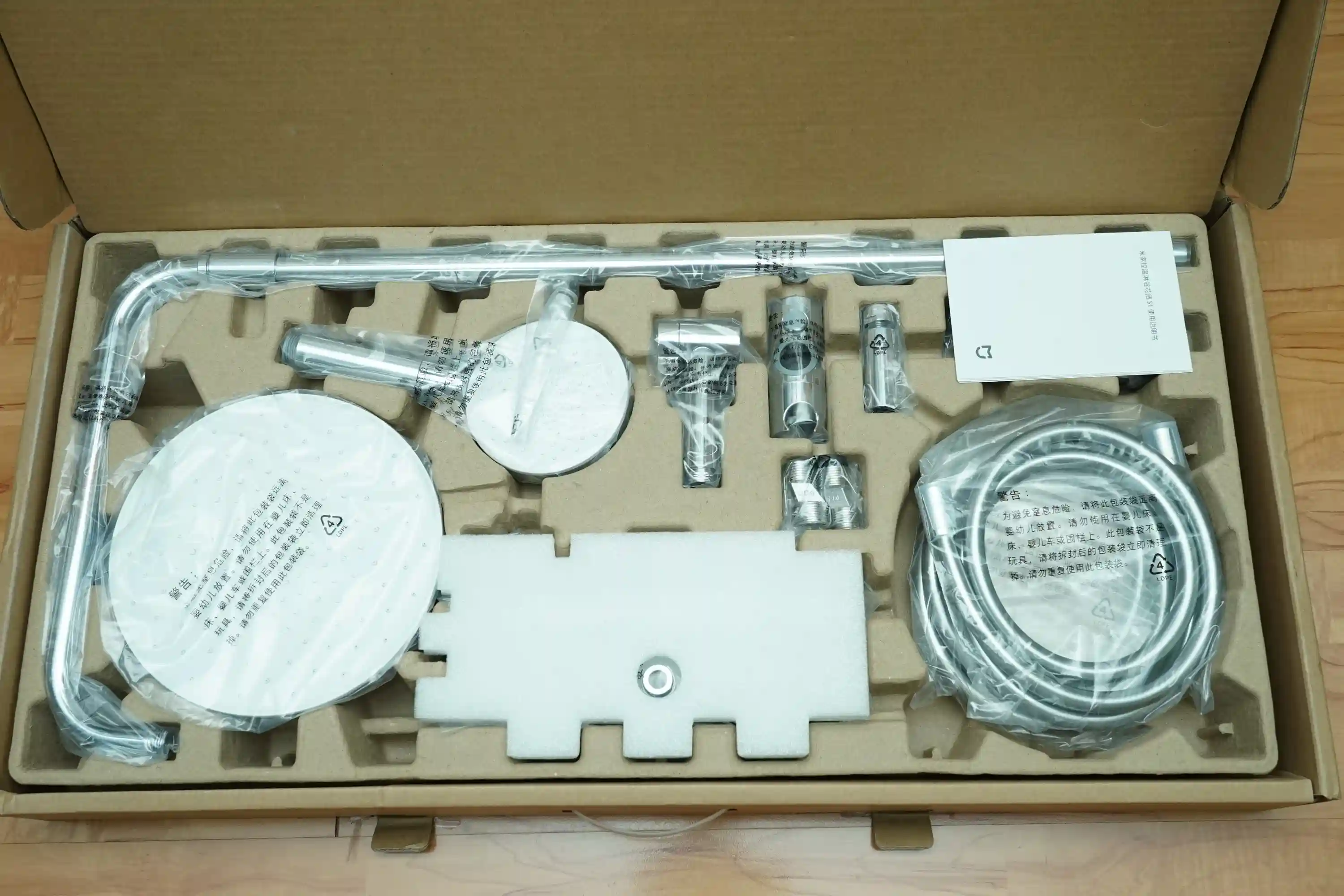 开箱展示:米家控温淋浴花洒S1采用了非常小米系的外包装风格,内部配件摆放也很规整,开箱体验不错。