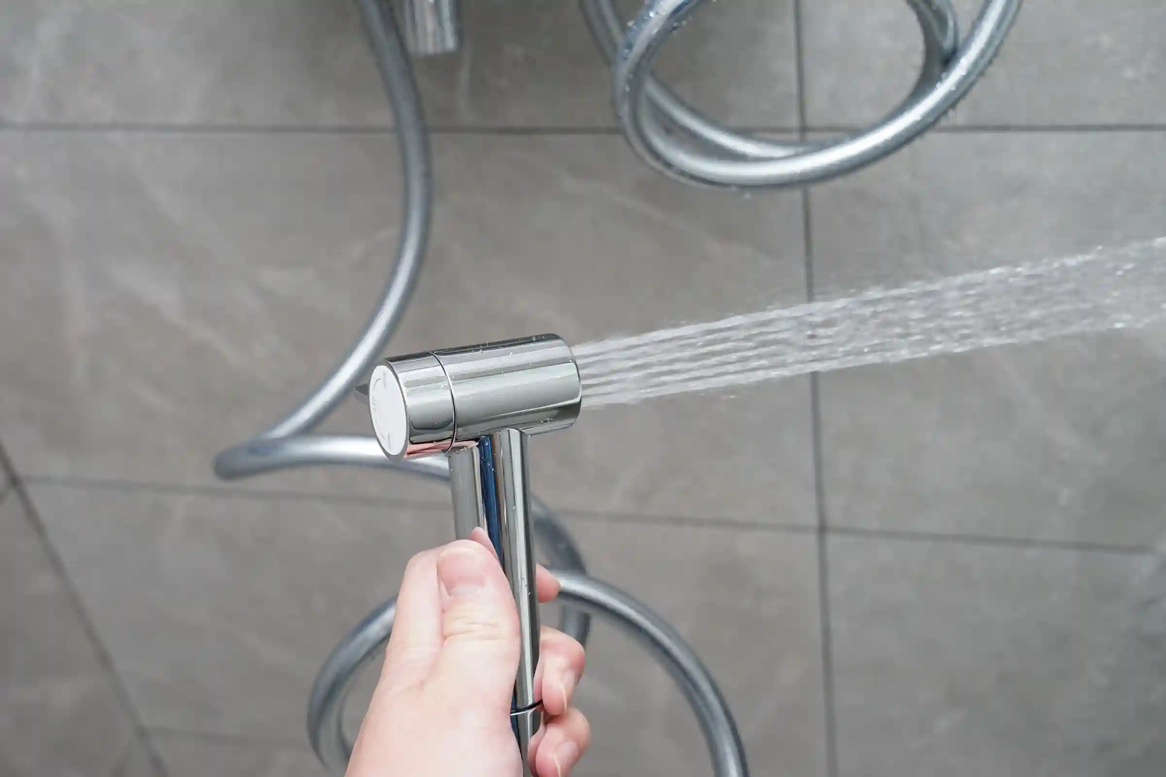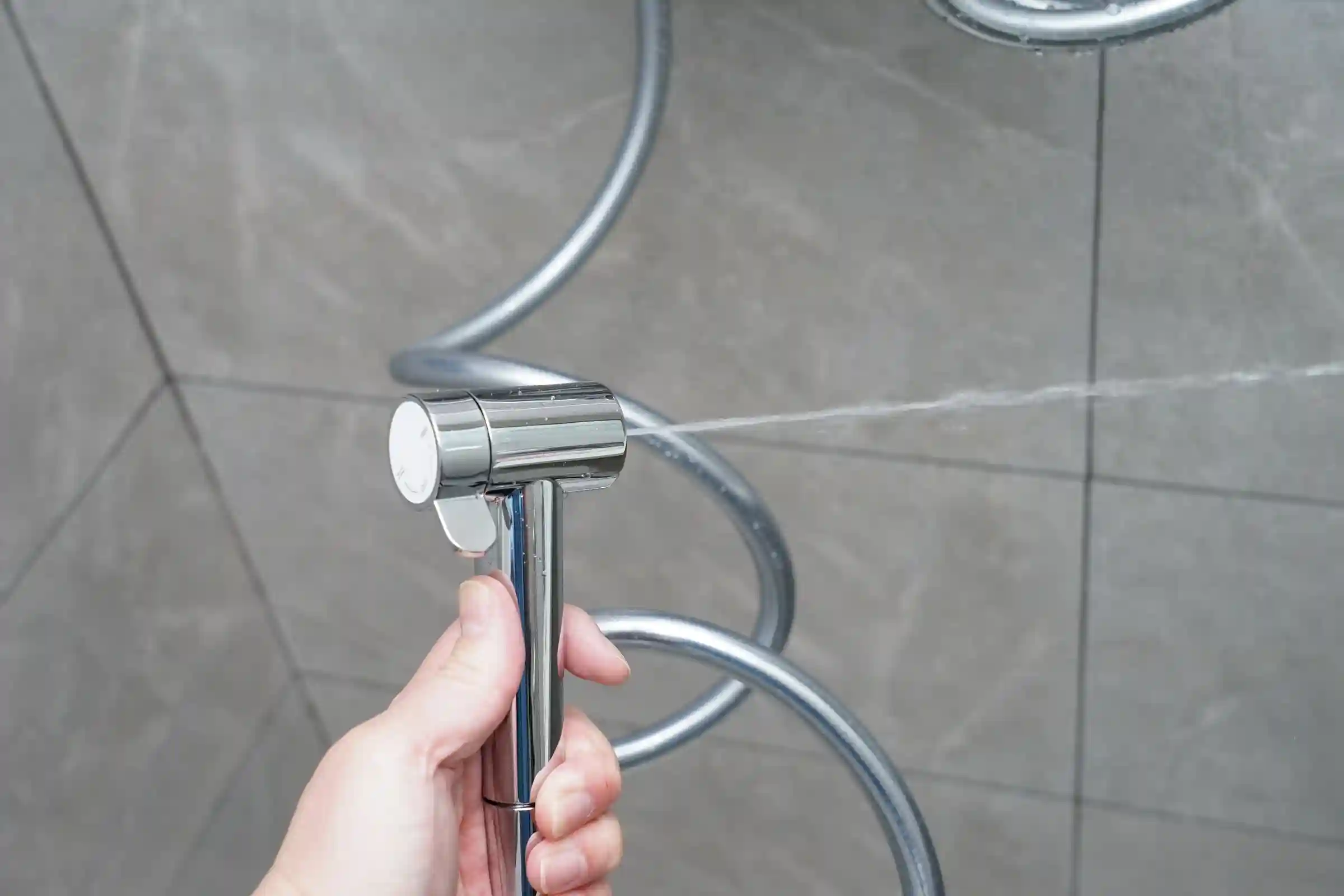 喷枪的强力档能产生高水压水流,可以轻松冲洗掉卫生间的脏污,提高清洁效率。
