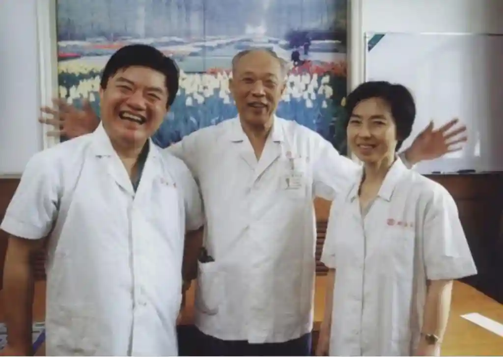 王振义(中)与他的学生,著名血液学专家陈竺、陈赛娟。上海交通大学医学院附属瑞金医院图
