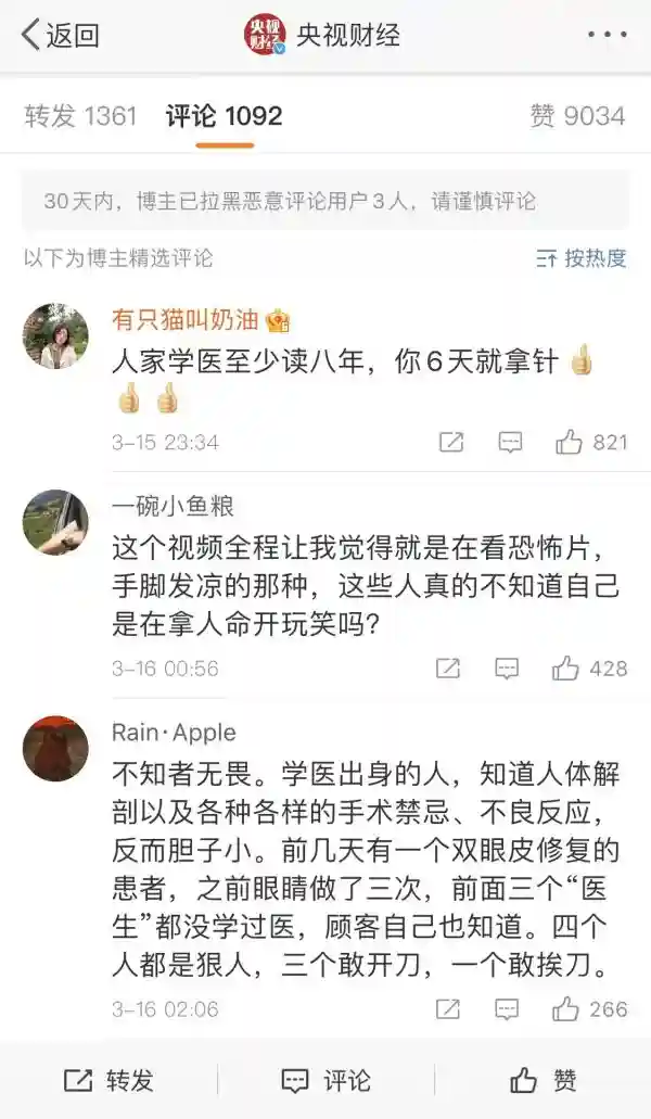 小雪的惨痛经历,并不是个例。据央视报道,大量通过几天的短期培训就上岗的非法医美从业者,游走在各大宾馆、民居,提供打美容针甚至割双眼皮、隆鼻等医疗美容服务,有人第一次拿针就敢上手术台。全国各地还有很多消费者因为非法医疗美容服务造成终身伤害。