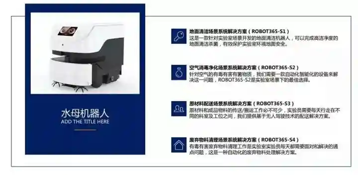 水母机器人一台高智能的无人驾驶机器人,主要用于取代人工重复性搬运工作动作非常平稳缓和,操作参数均储存在电脑端,全程数据化。