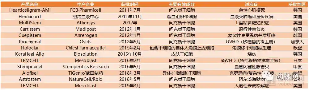 全球已获批的干细胞治疗产品