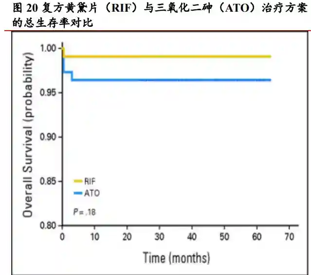 北京大学人民医院在《临床肿瘤学杂志》(JournalofClinicalOncology)发表了一项随机、多中心临床III期非劣性试验结果。该研究设计目的为,针对急性早幼粒细胞白血病(APL)新确诊患者,对比考察了在进行诱导治疗及维持治疗时,含四硫化四砷(As4S4)口服药物复方黄黛片(RIF)和三氧化二砷(ATO)静脉注射的疗效与安全性。研究表明对APL患者进行一线治疗时,口服RIF联合ATRA不劣于静脉ATO联合ATRA方案,因此,可考虑将其作为适用患者的常规治疗手段。