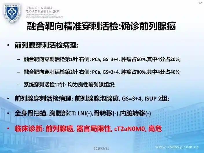 上海十院前列腺癌MDT团队于2018年3月4日上午举办了第八届"维前沙龙"---前列腺癌宣讲会。泌尿外科杨斌医生通过真实的实战病例分享了“前列腺癌的精准穿刺与精准手术”。会后经文字和图像整理,形成了此篇文章,进一步宣传普及前列腺癌的融合靶向精准穿刺,让公众朋友们对前列腺癌的精准穿刺诊断有更多的认识;同时也让大家对上海十院前列腺癌MDT团队在前列腺癌领域的对学术与技术坚持与努力有更多的了解。