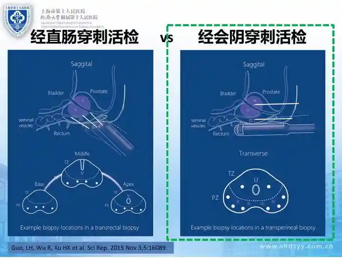 超声引导下经会阴前列腺穿刺活检是具有明显的优势:经会阴前列腺穿刺活检时,穿刺针经会阴部皮肤刺入,不经过直肠壁,避免了直肠损伤和直肠出血,也减少了感染和发热的风险,避免了穿刺导致的前列腺与直肠的水肿和黏连,诊断明确后也就不需要延迟手术。