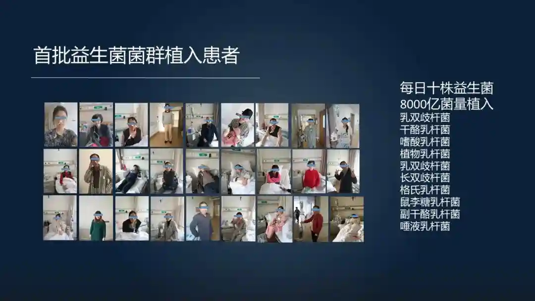这是我们在2018年开始进行的首批的益生菌菌群植入患者。这些患者有老人,有年轻人,有门诊治疗失败的患者,有粪菌移植失败的患者,有手术失败的患者。