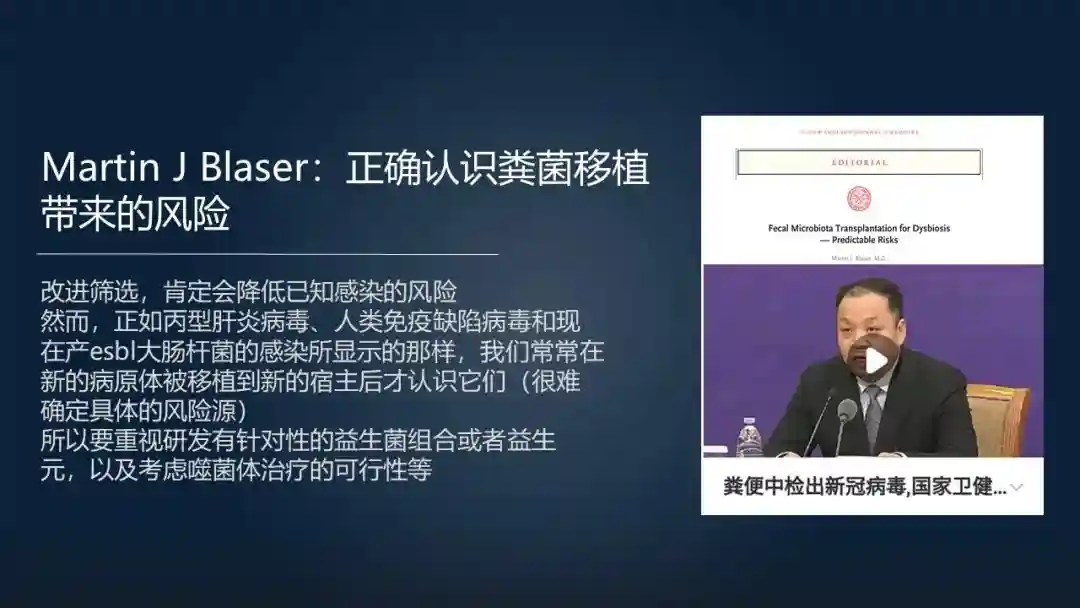 这是去年MartinJBlaser在《新英格兰杂志》上面发了一篇文章,他提出要正确认识粪菌移植带来的风险。