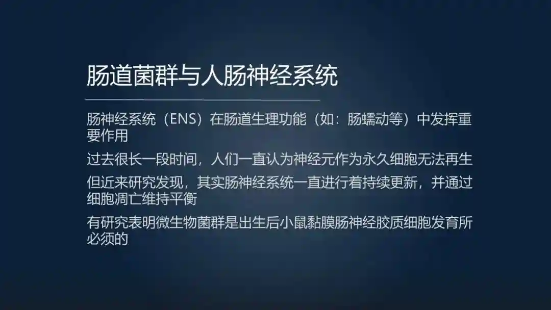 而且还有研究发现,肠道微生物菌群它是出生后的小鼠肠道黏膜神经胶质细胞发育必须的。