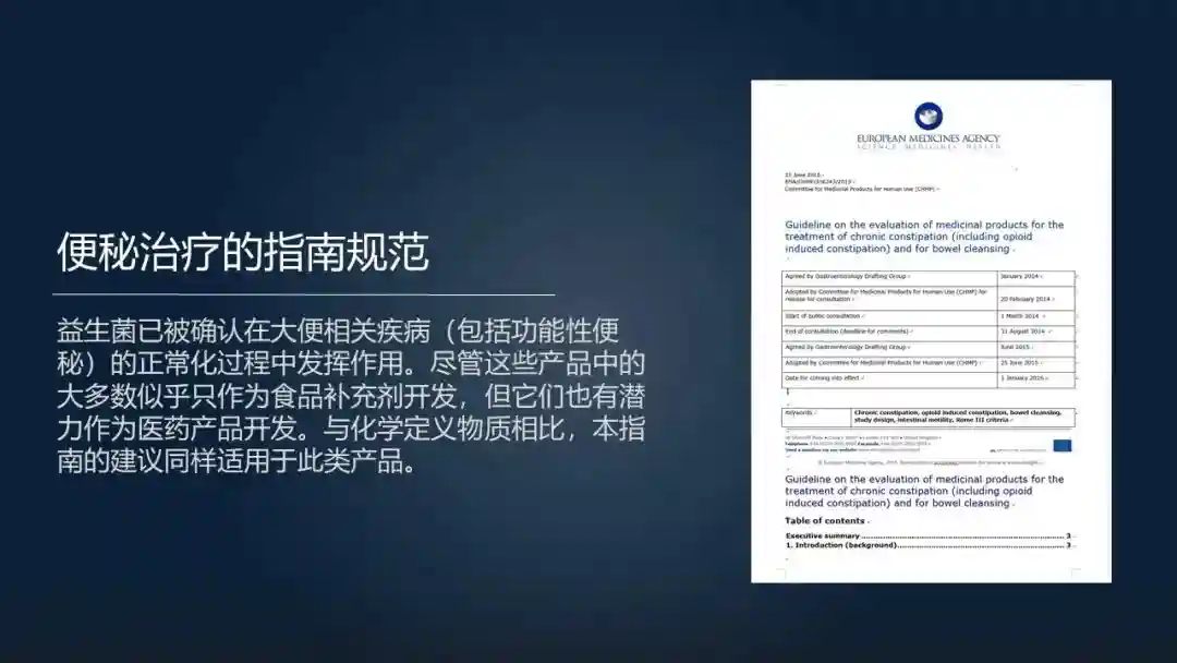 这是2016年欧洲的便秘的治疗指南。当中提出了益生菌已经被确认在大便相关疾病,包括在功能性便秘的一个正常的过程中其发挥的作用。