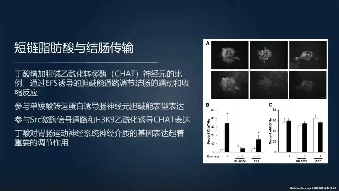 短链脂肪酸在不同的结肠,在近端、远端,它不同的短链脂肪酸(包括丁酸、丙酸、乙酸)的比例不同,会影响到结肠传输的一个动力情况。
