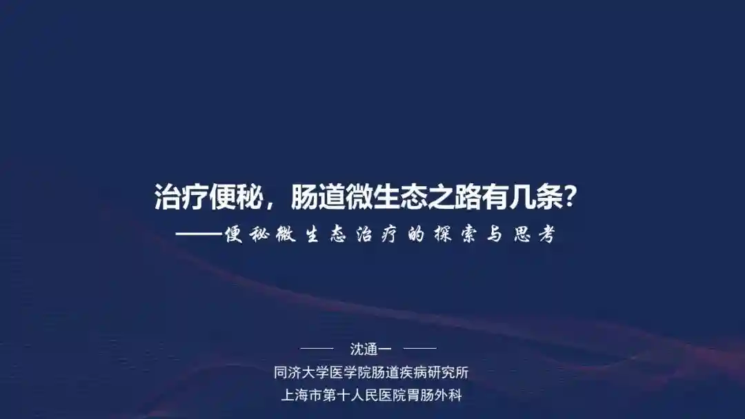 大家好,我是来自于上海第十人民医院胃肠外科的沈通一。我今天讲的是:治疗便秘,肠道微生态之路有几条?