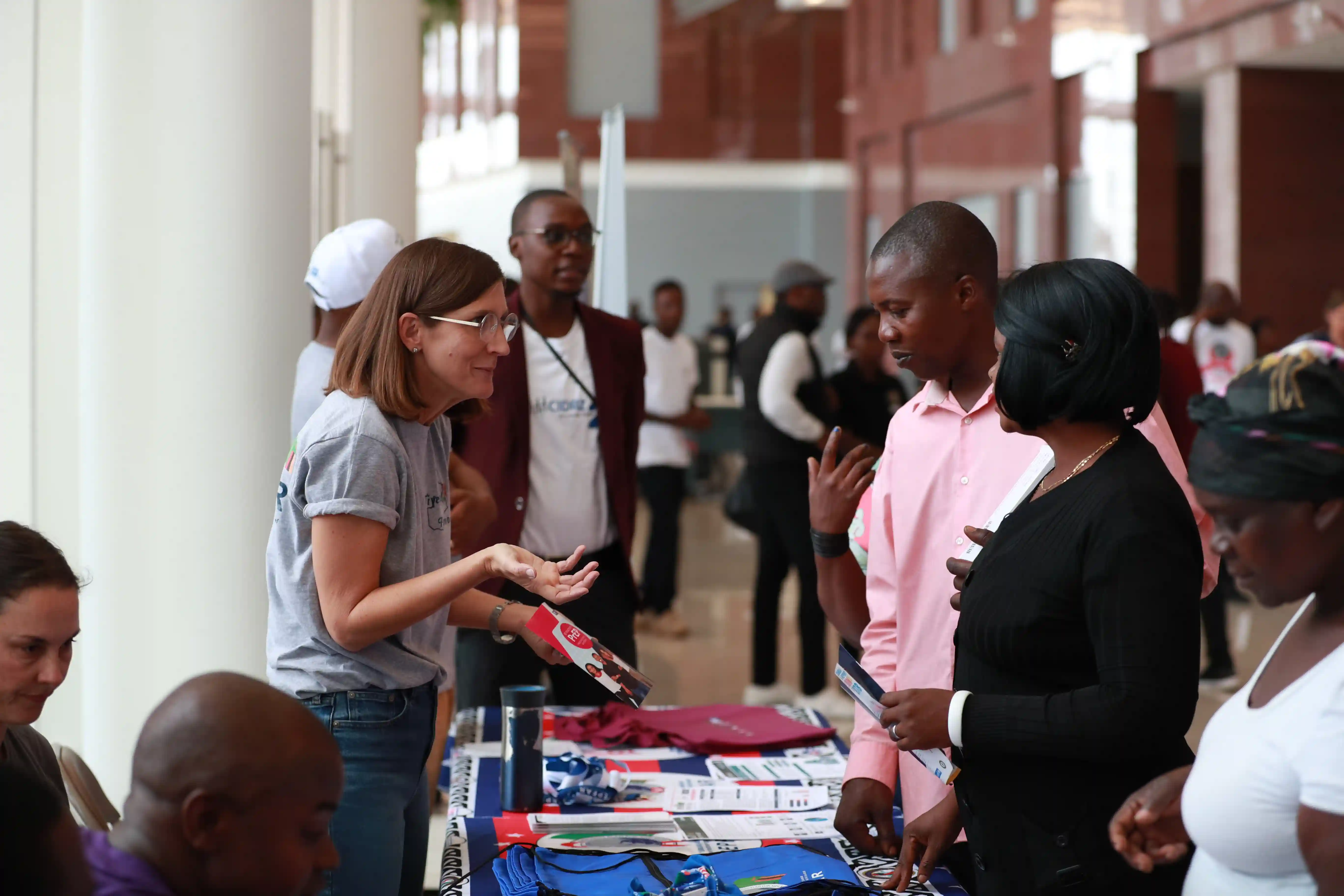 2022年12月1日,在赞比亚首都卢萨卡,人们咨询艾滋病防治知识。新华社记者彭立军摄