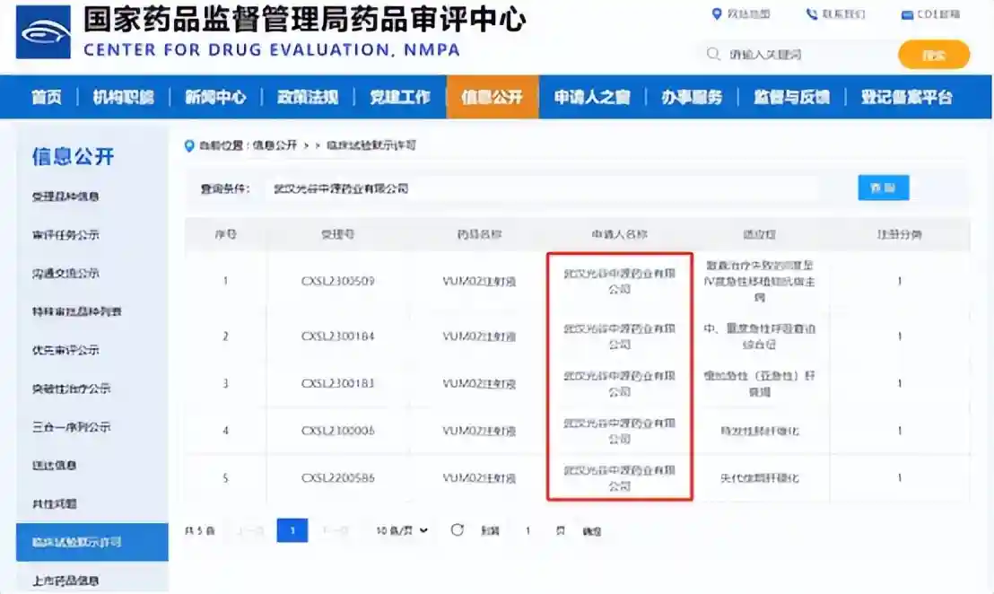 第二步:把公司名字复制到搜索框里面,以中源协和全资子公司武汉光谷中源药业有限公司为例。