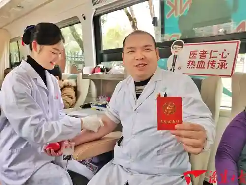 福建省成功捐献造血干细胞队伍中首位医务工作者儿科医生吴国平,援疆返乡期间,到现场献爱心。据悉,2006年至今,他每年坚持参加无偿献血。